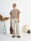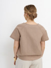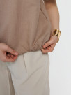 Базовую женскую блузку из льна можно заправить и тем самым подчеркнуть талию, или носить расслаблено на выпуск — низ на резинке позволяет чувствовать комфорт при носке в любом виде.