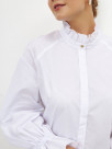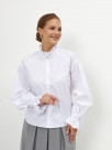 Легкая, воздушная, романтичная блузка-рубашка, с объёмными нарядными рукавами. Функциональные резинки на запястьях обеспечивают удобство и регулировку длины рукава. Модные манжеты придадут особый шик вашему образу. Воротник-стойка расширен, что обеспечивает удобство и комфорт, а также идеальную посадку на все фигуры, а изящная рюша сделает образ законченным.