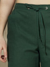 Карго выполнены из легкой ткани с содержанием 70% льна и 30% хлопка, что несомненно обрадует ценителей натуральности и экологичности материалов.