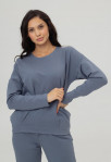 Джемпер со складками сшит из двухниточного футера, именно поэтому не скатывается, не просвечивает, мягкий и приятный к телу.