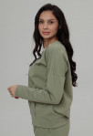 Джемпер со складками сшит из двухниточного футера, именно поэтому не скатывается, не просвечивает, мягкий и приятный к телу.