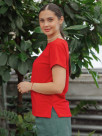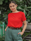 Базовая футболка сшита из кулирной глади с лайкрой, именно поэтому она не просвечивает, не скатывается, мягкая, эластичная и приятная к телу.