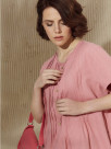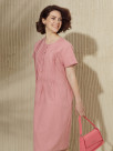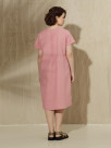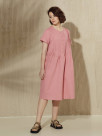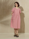 Платье с защипами выполнено из смесовой ткани, состоящей из 70% льна и 30% хлопка.