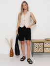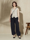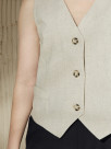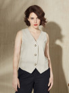 Женский жилет выполнен из легкой ткани, состоящей из 70% льна и 30% хлопка, что обеспечивает не такую выраженную сминаемость, как у 100% льна.